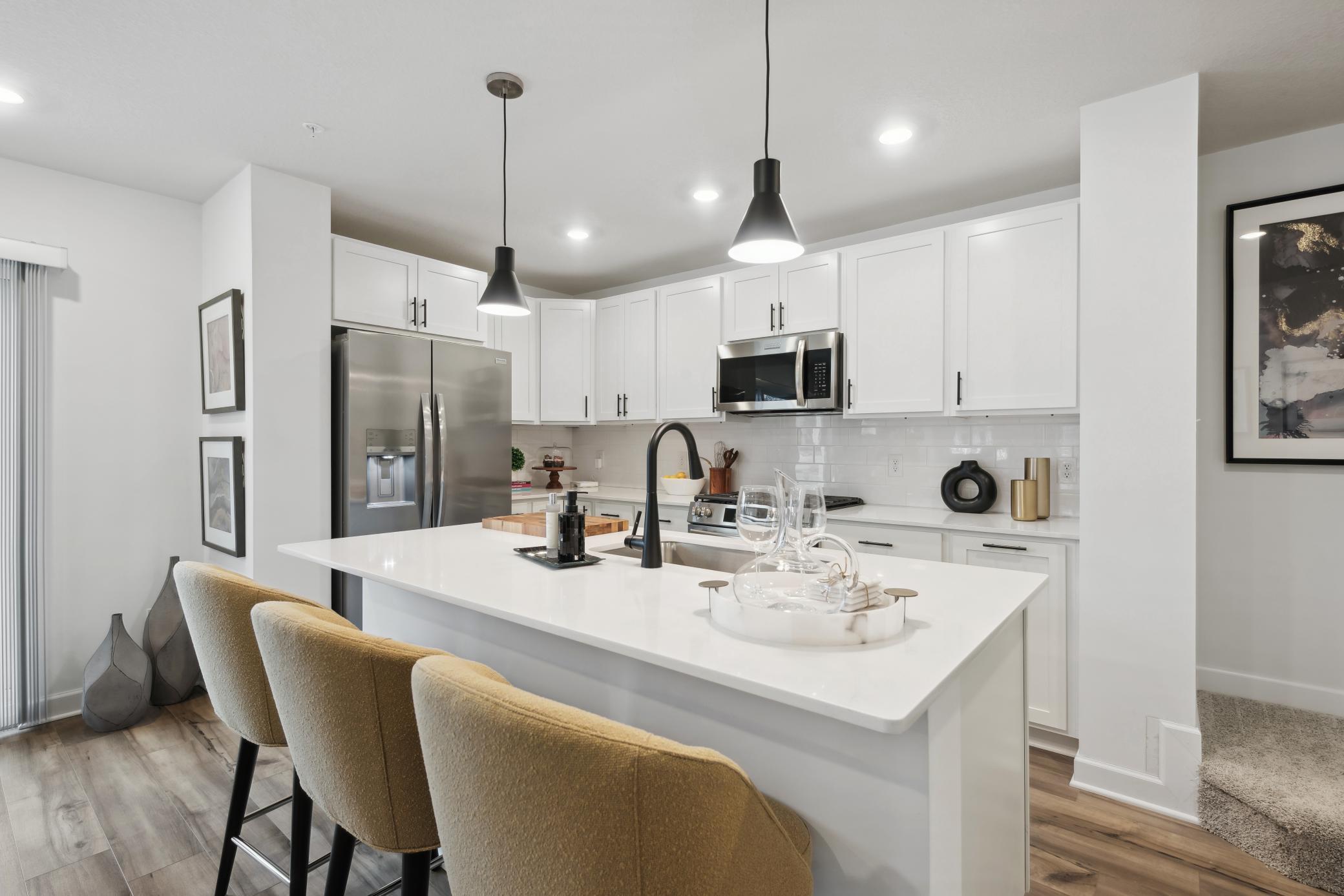Property Description Step inside The Franklin, a thoughtfully designed model townhome that blends comfort, elegance, and convenience. Boasting three generously sized bedrooms upstairs, this residence offers a serene retreat for relaxation and restful nights. The modern kitchen shines with exquisite finishes, including sleek quartz countertops, stainless steel appliances, and contemporary cabinetry. Laundry day is a breeze with the conveniently located upper-level laundry room, while the open-concept floor plan ensures seamless flow throughout the main living areas. A sprawling island becomes the focal point for both casual dining and culinary adventures, and the included patio provides a charming spot for hosting friends or enjoying peaceful evenings under the stars. Nestled in a vibrant area known for its proximity to top-tier shopping, dining, and entertainment, this gem is ready to make every day a little brighter.