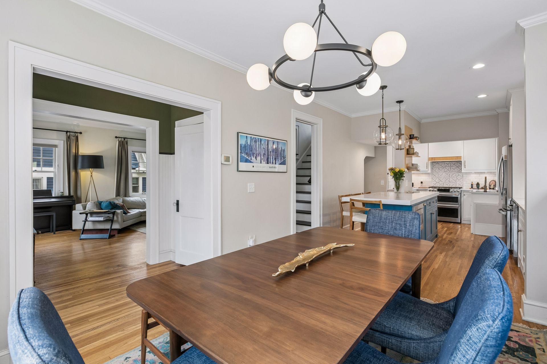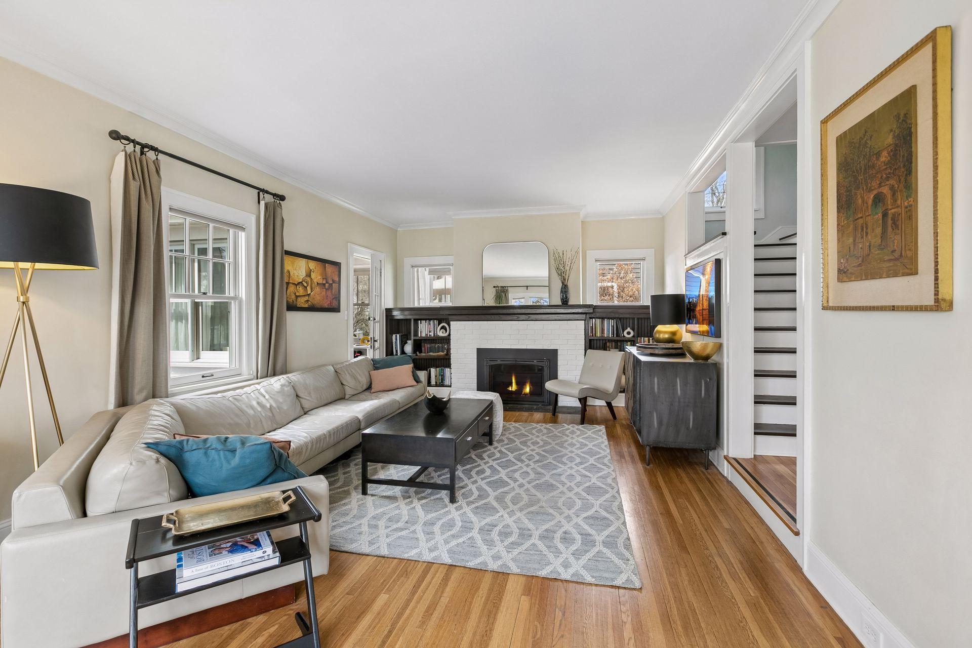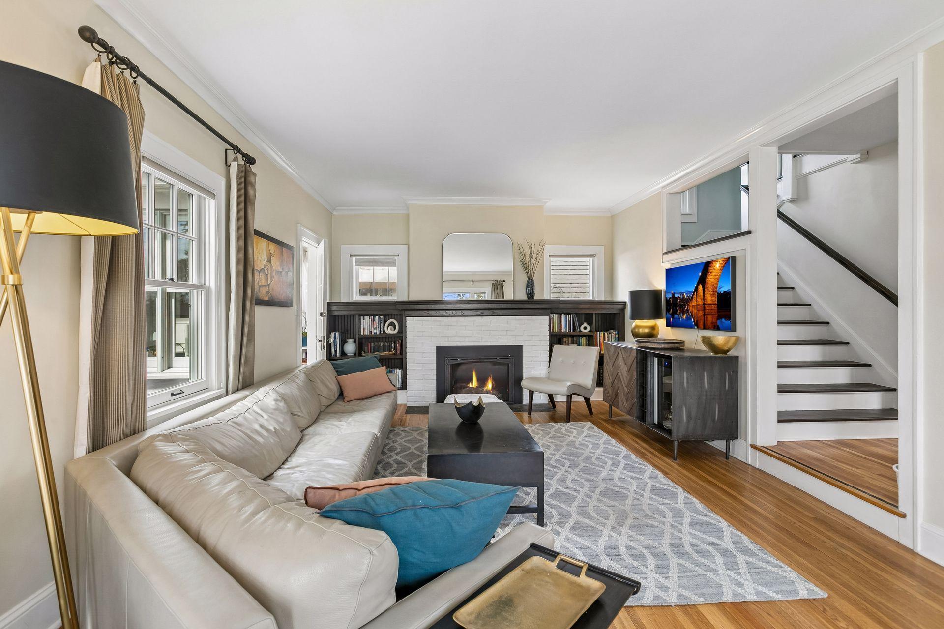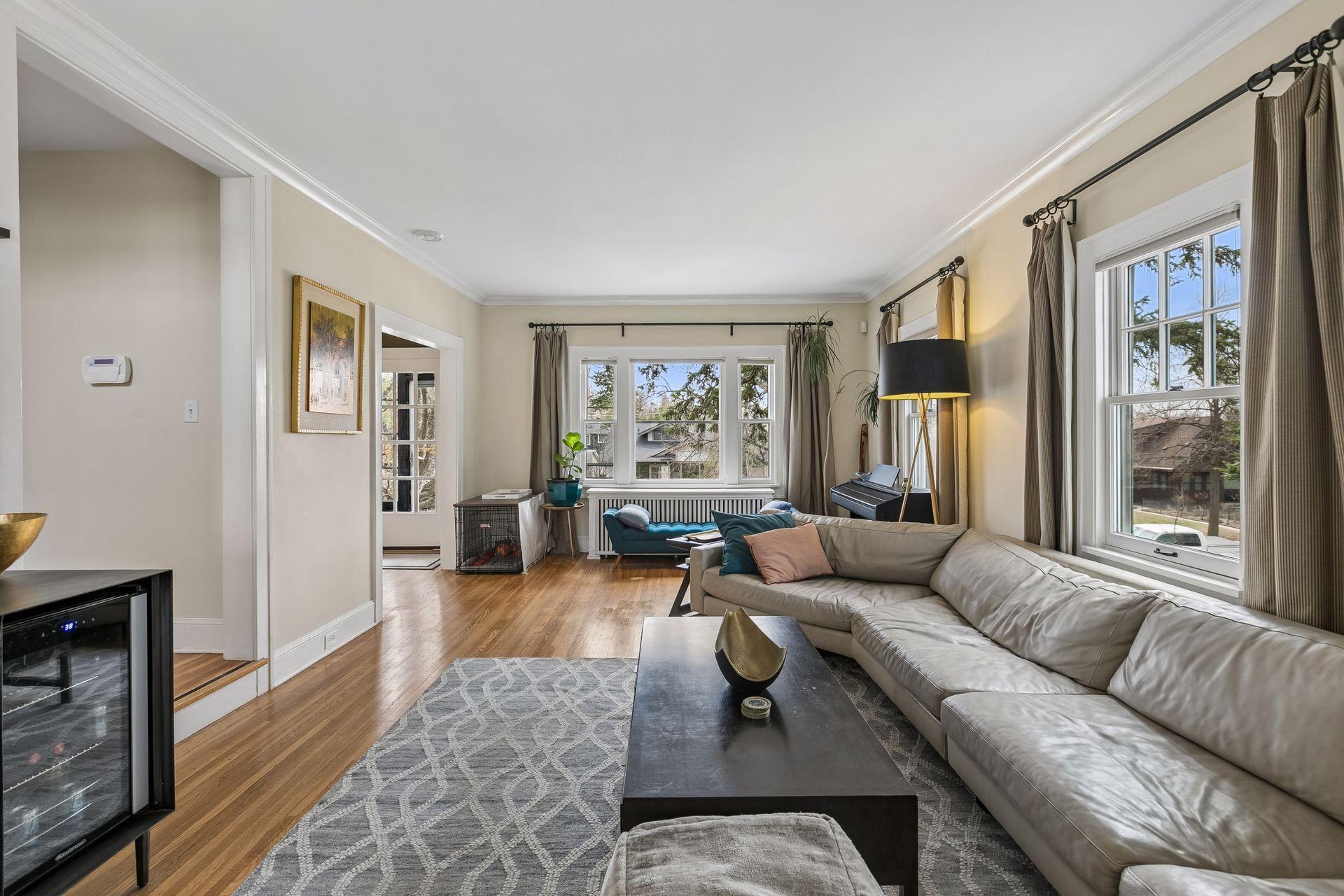 Inside, the home blends classic charm with modern updates. The custom kitchen (2022) includes new insulation, plumbing, and a quartz island. Original character shines with restored front windows and a built-in buffet, complemented by updated windows with added noise insulation.